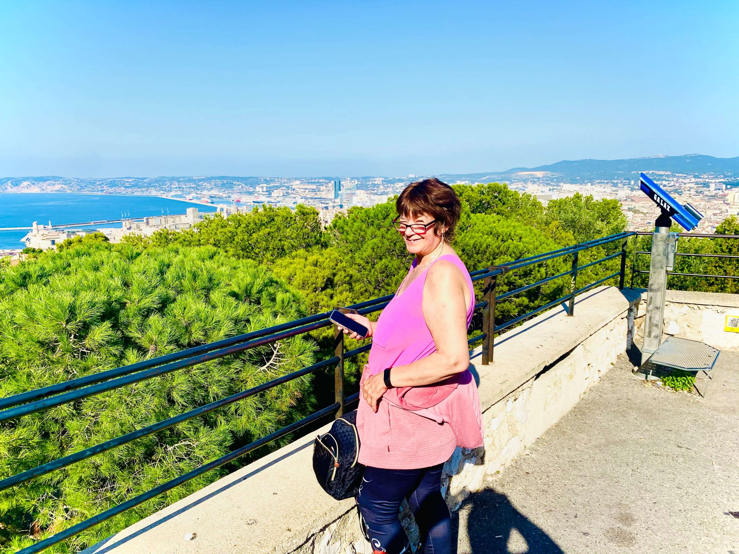 Enjoying the view at Notre Dame de la Garde in Marseille.
